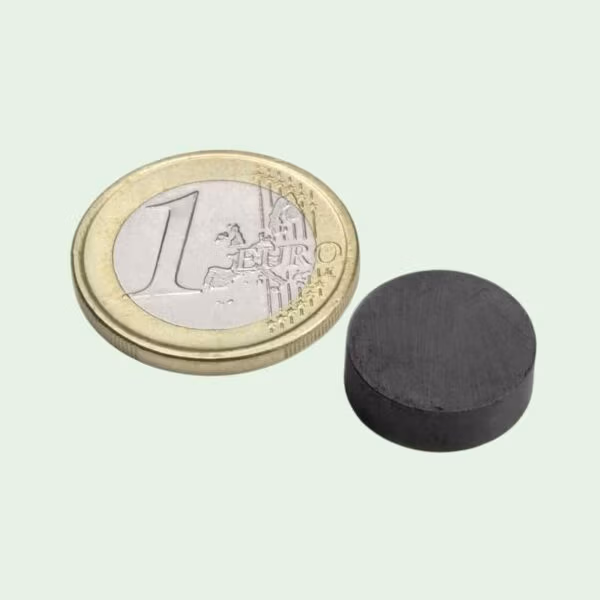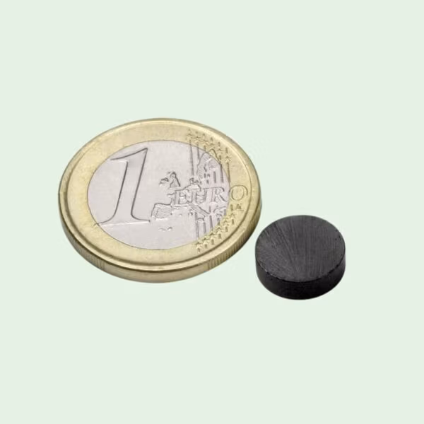 Schijfmagneet van ferriet. Voor zowel binnen als buitengebruik geschikt. Minder krachtig dan Neodymium magneten.