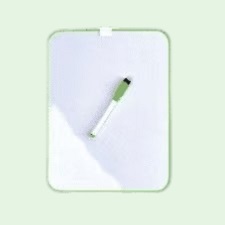 Handig formaat klein whiteboard in de maat van 21.5 x 28 cm en afgeronde hoeken. Op de achterkant zitten twee magneetstrips zodat het whiteboard ook op je koelkast kan hangen. Ook leuk voor de kinderen om met whiteboardstiften op te tekenen!