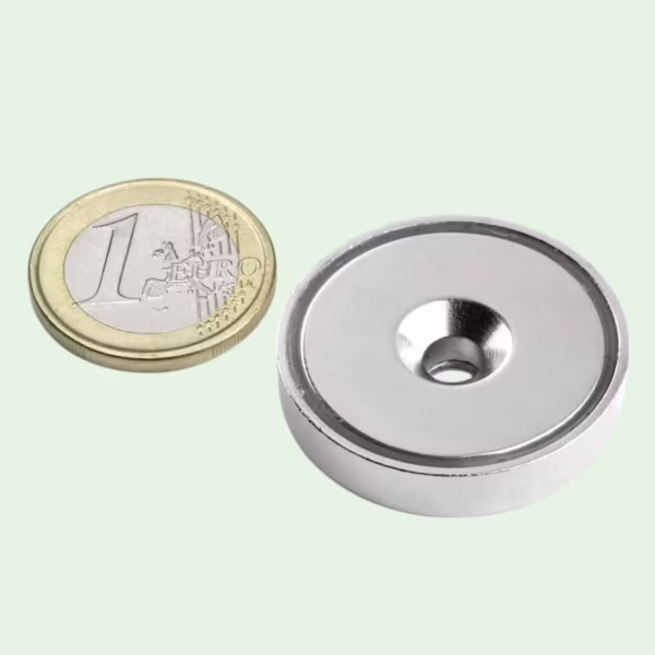 Dat hangt af van de diameter en de magneetkwaliteit. Kleine potmagneten kunnen enkele kilo’s dragen, terwijl grotere potmagneten met een diameter van 40 mm of meer tot wel 60 kilo trekkracht leveren op een vlak metalen oppervlak.