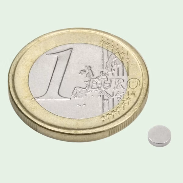 Krachtige neodymium schijfmagneet Ø 4 mm, verkrijgbaar in meerdere diktes en trekkrachten.