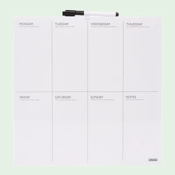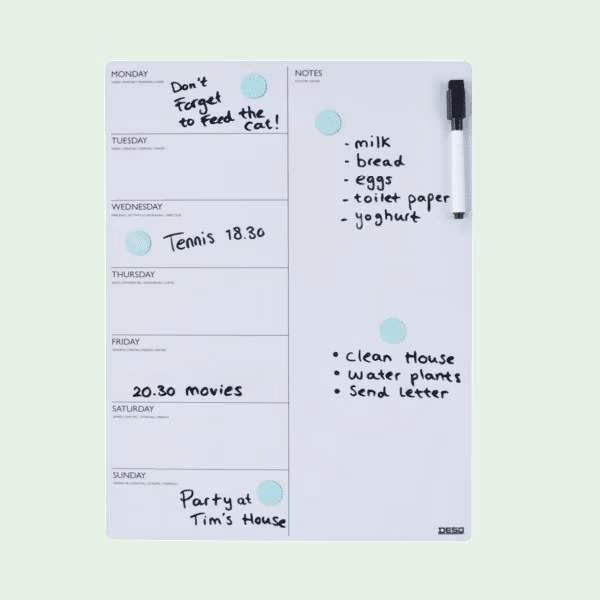 Handige weekplanner voor alledaags gebruik. Door magnetische achterzijde perfect te gebruiken op je koelkast. Met gratis meegeleverde whiteboardstift.