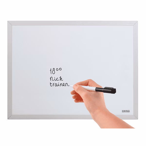 Handig magnetisch whiteboard van Desq (40 x 60 cm) waarop je al je ideeën kwijt kunt. Perfect voor gebruik met whiteboardmagneten. We leveren het bord inclusief een gratis stift en bevestigingsschroeven, zodat je direct aan de slag kunt.